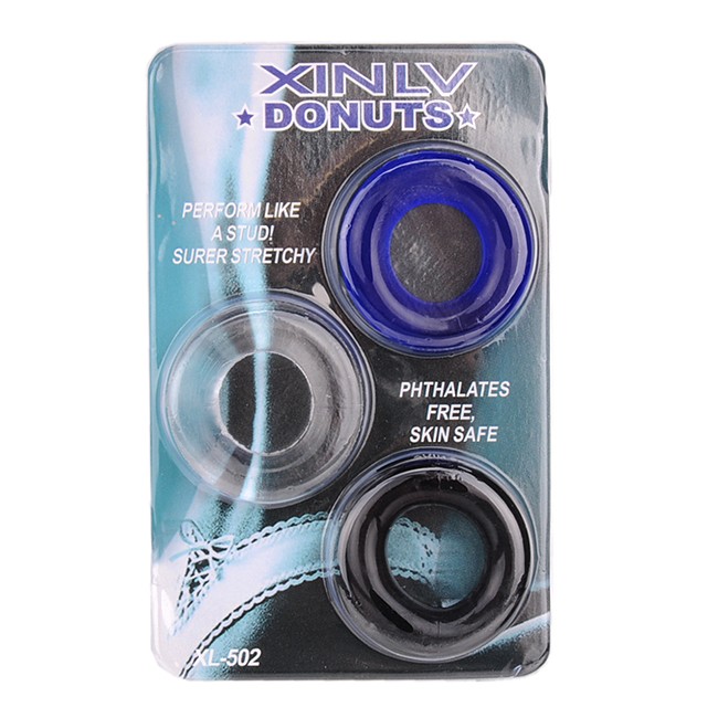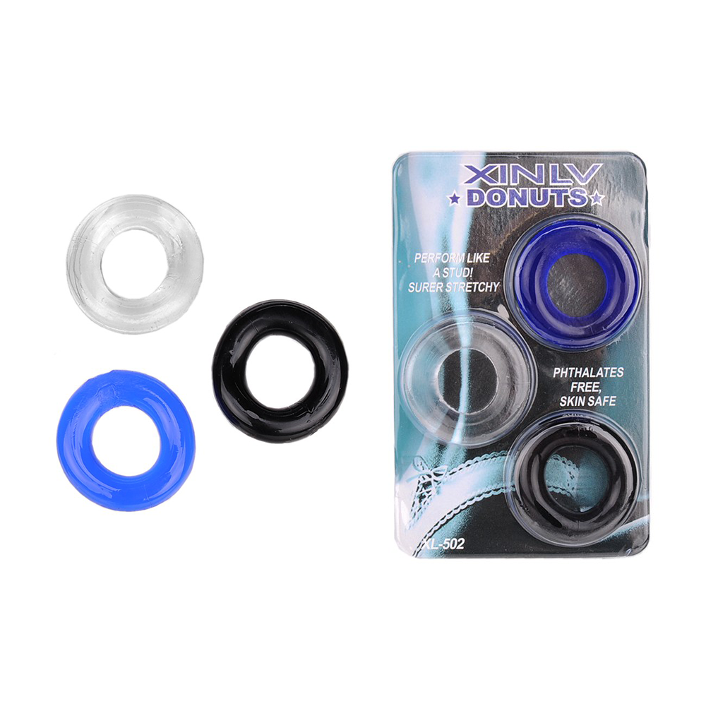 Kit com 3 anéis penianos feito de material super macio. Ajuda a manter a ereção e retardar a ejaculação.