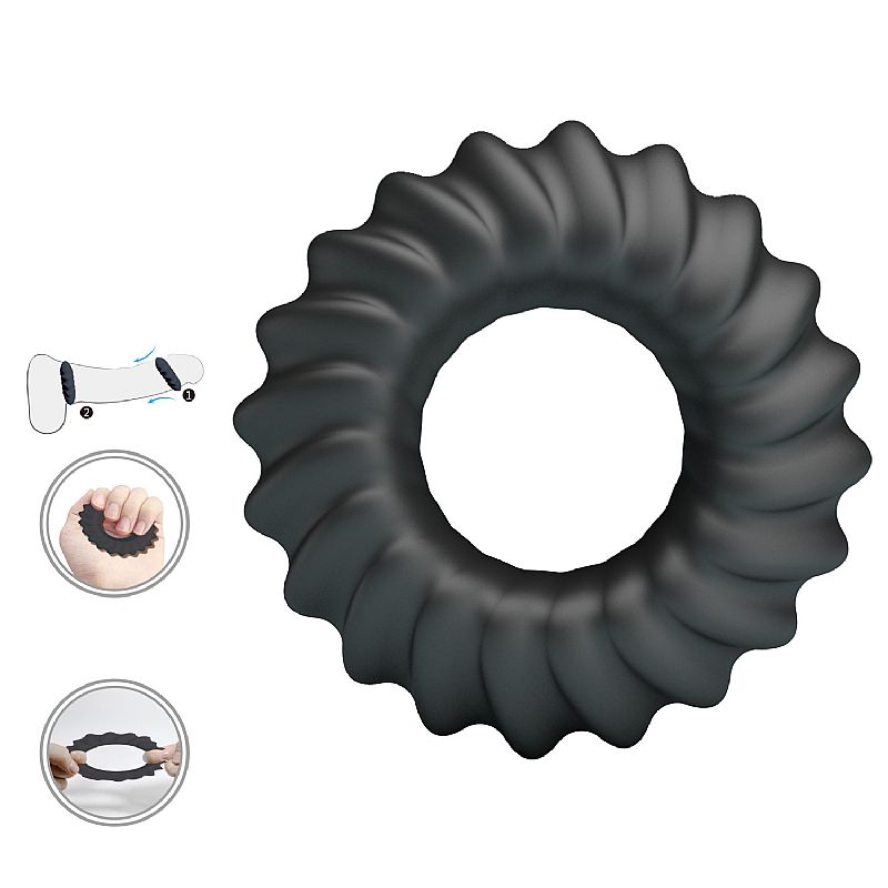 Anel peniano com textura ondular grande. Confeccionado em silicone é super flexível, adequando-se perfeitamente a você.