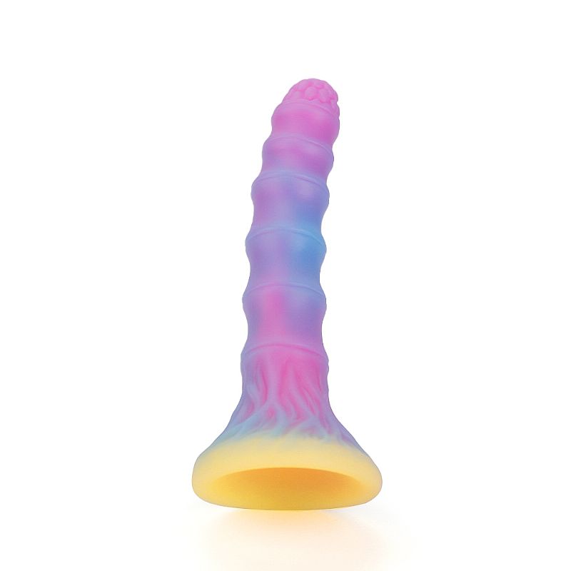 Dildo anal com formato Alien Fluorescente, feito de um material macio e consistente com base que facilita o manuseio.
