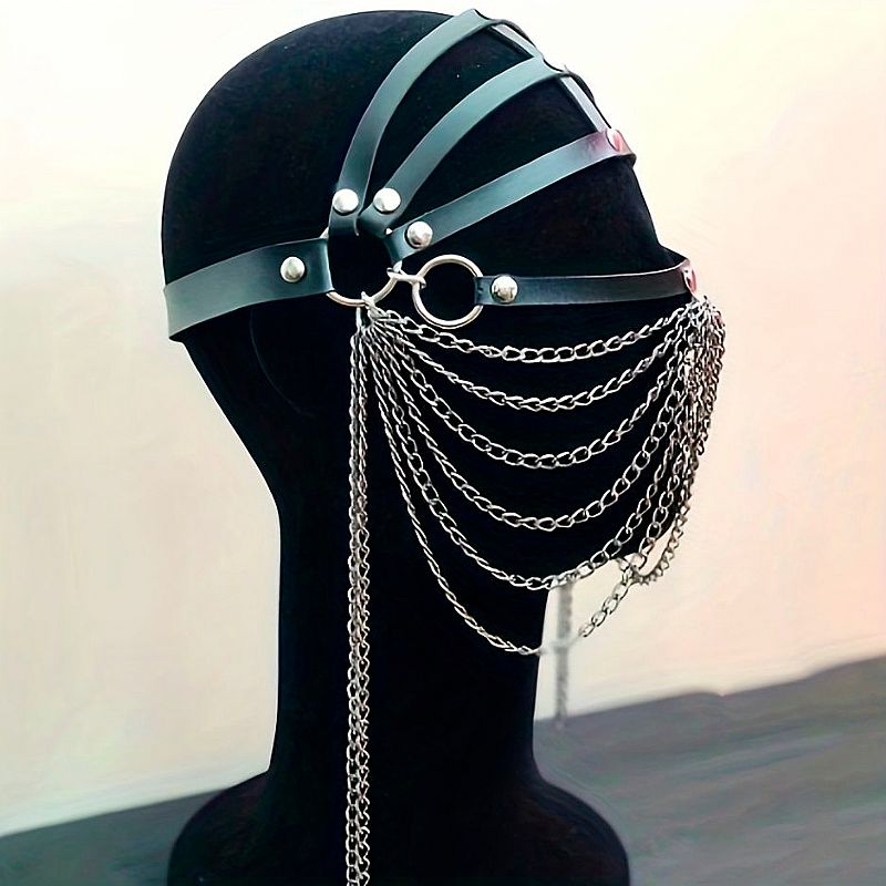 Máscara para fantasia com formato de Tiras com correntes que cobre o rosto,