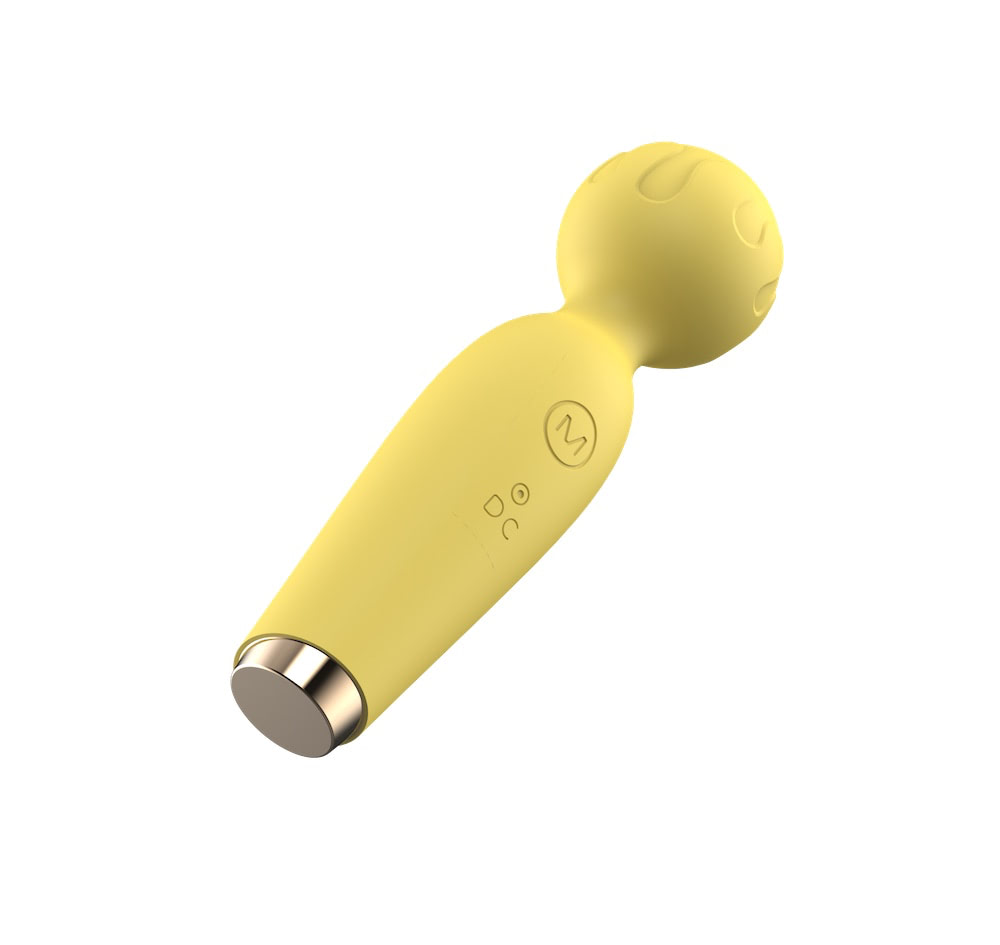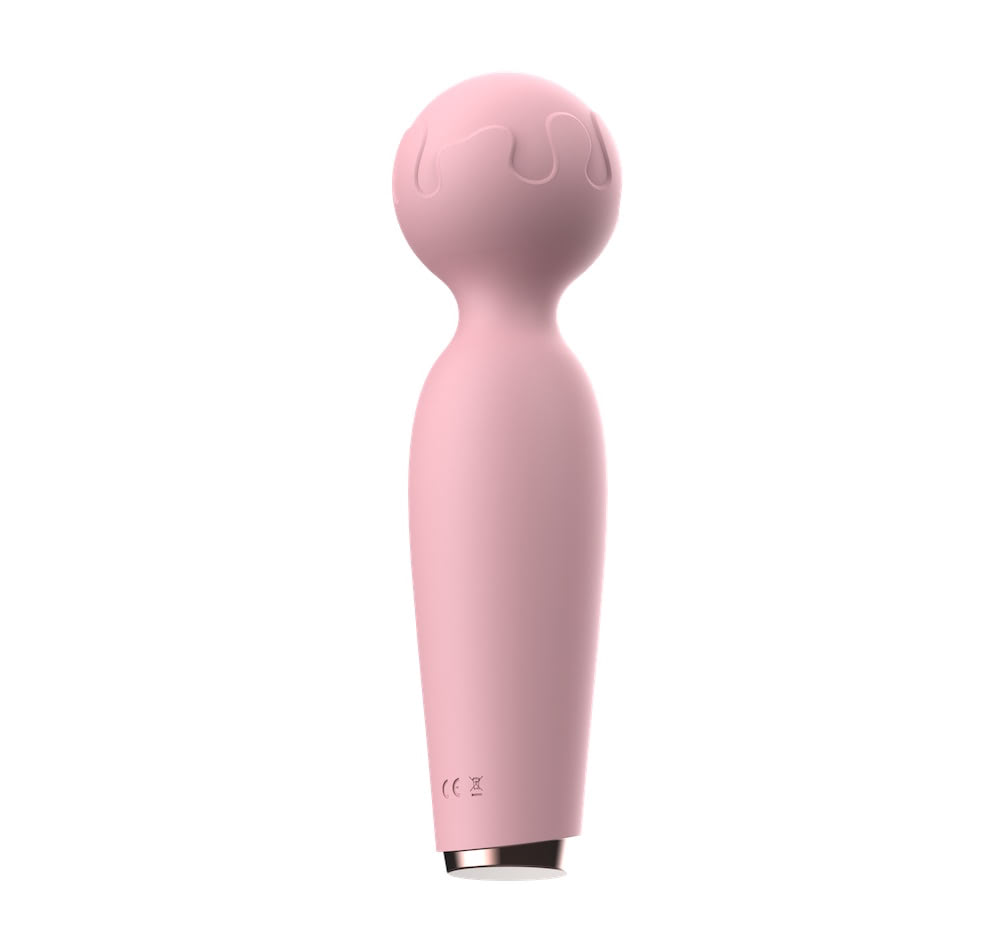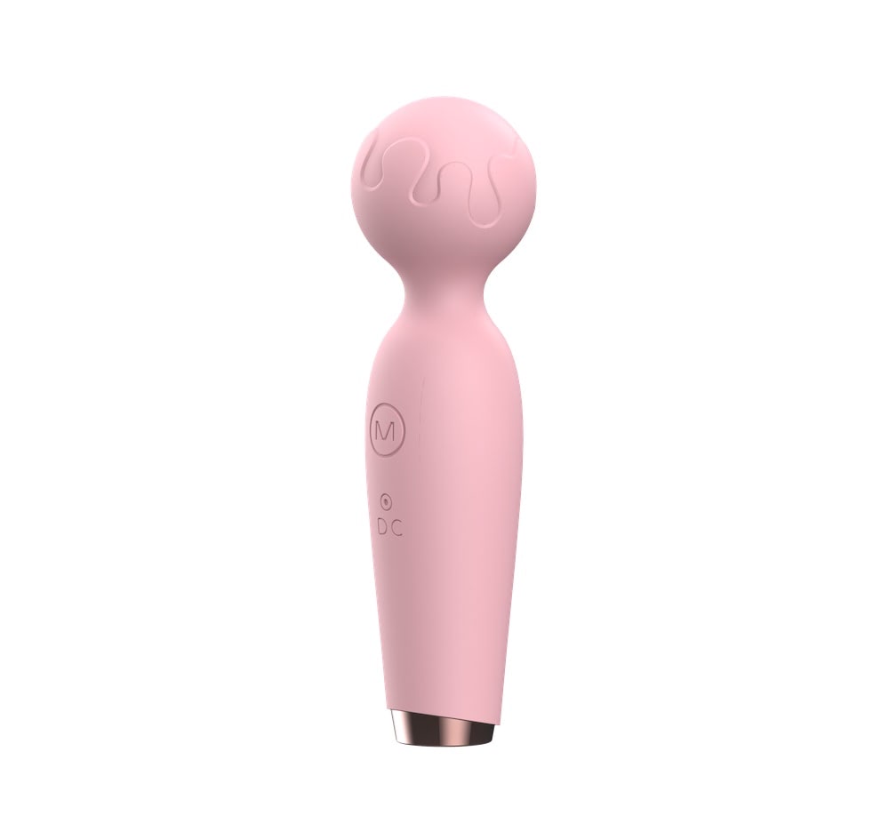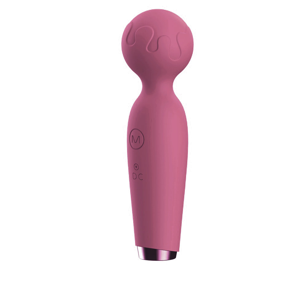 Massageador corporal recarregável, em silicone ABS super macio, possui 10 modos de vibração, com detalhe na ponta onde conecta o seu carregador.