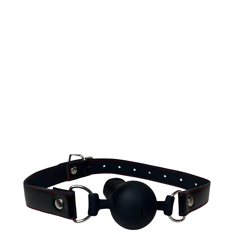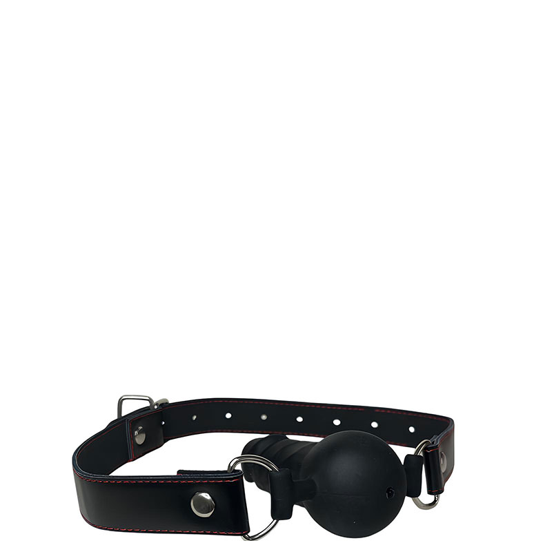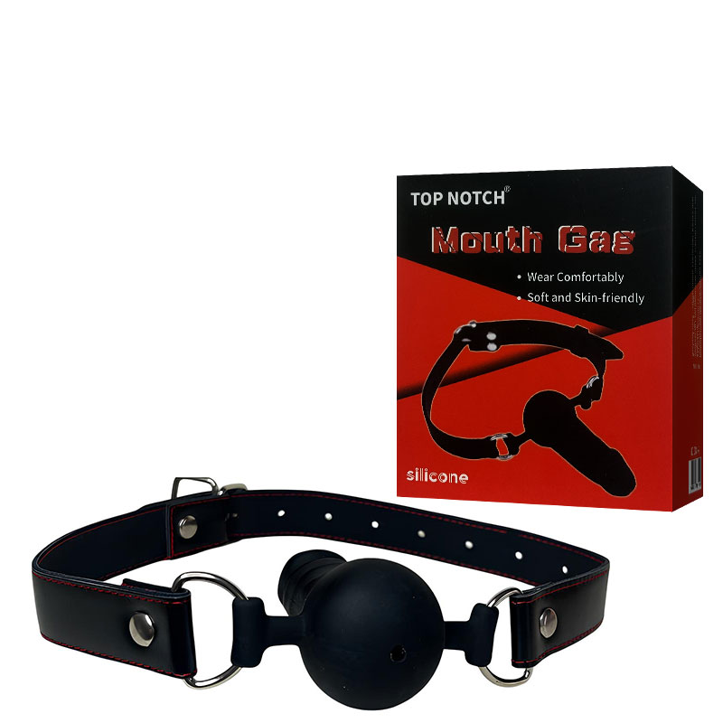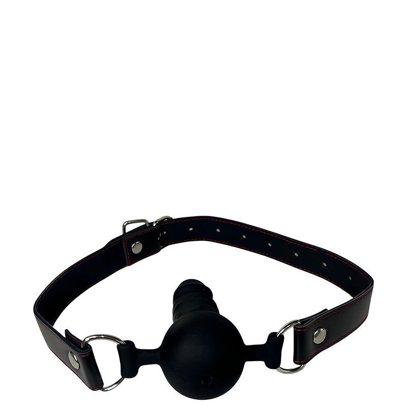 Mordaça com pênis realístico, possui veias, glande saliente e ajuste com fivela.