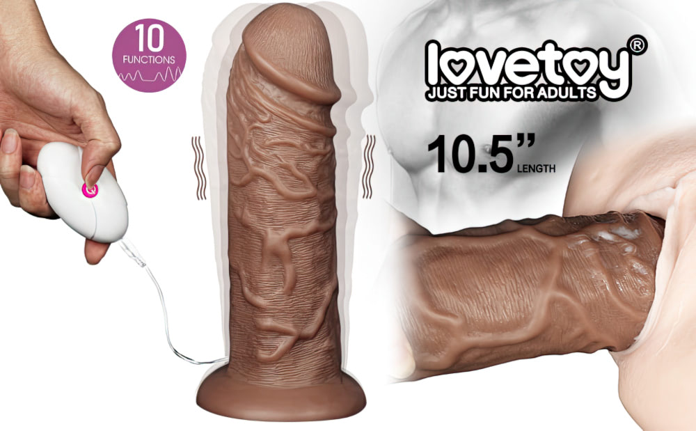 Pênis Realístico 26.6×6.3 cm Realistic Chubby Vibrating Dildo Marrom – Lovetoy. Explore cada centímetro desse pênis realístico gigante!Satisfaça-se com cada curva e relevo desta réplica gigante exata que dá a sensação de que suas fantasias ganham vida.Macio e flexível para maior conforto durante a penetração.Este enorme dildo king-size é tão incrível por ser totalmente parecido com a pele, trazendo a garantia de uma experiência de preenchimento sensacional.Possui uma ventosa de grande pressão, que pode ser colocada na parede, no chão, em banheiras, azulejos ou fixada em qualquer outra superfície lisa e não porosa, deixando as mãos livres.Você pode usar sozinho(a) ou acompanhado(a) para a diversão ficar ainda mais emocionante. Á prova d’água.Seus 8 ritmos de vibração e 2 velocidades são muito fáceis de explorar. Basta percorrer as configurações no controle com fio para encontrar a função mais adequada para o seu prazer!Utiliza 2 pilhas AAA (Não incluídas).