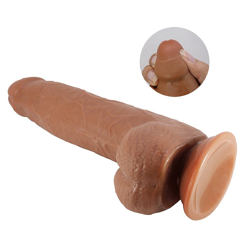 Pênis Realístico com Dupla camada em formato de pênis com ventosa, confeccionado em TPE possui glande definida,