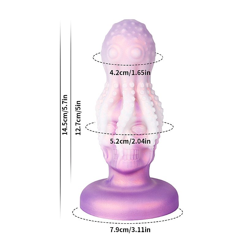 Plug anal com formato caveira com polvo, feito de um material macio e consistente com base que facilita o manuseio.