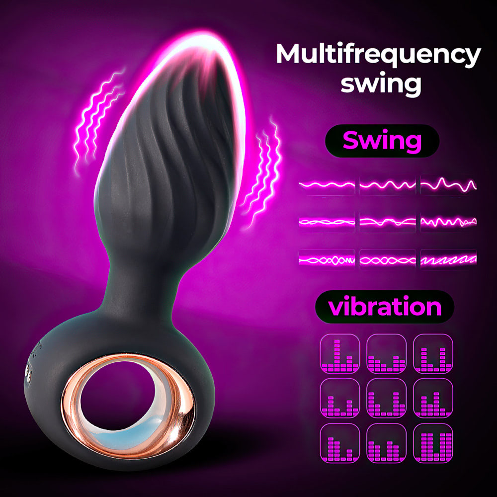 Plug Anal em Silicone com 9 Modos de Vibração e rotação,e Controle Remoto sem Fio.Descubra novas formas de prazer com este plug anal vibratório.Seu design cônico permite uma penetração anal ou vaginal gradual e confortável, ideal para preparar o ânus para o sexo anal sem dor.Com 9 modos de vibração e rotação,esse plug oferece uma experiência única e inesquecível de prazer. Descubra sensações incríveis e estimule as terminações nervosas do ânus, tornando o sexo ainda mais excitante e prazeroso.