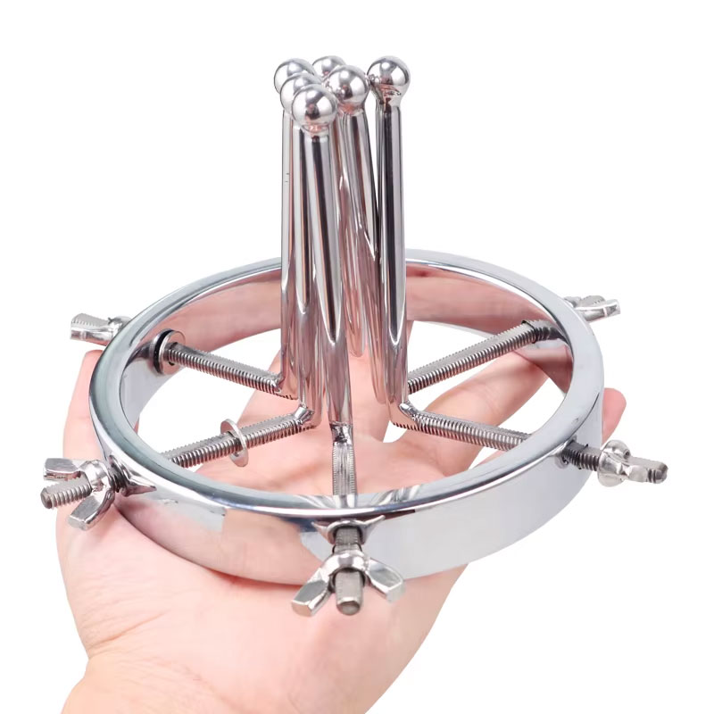 Plug anal expansor com 6 hastes, possui pontas arredondadas que podem ser ajustadas até 10,5 cm de largura.