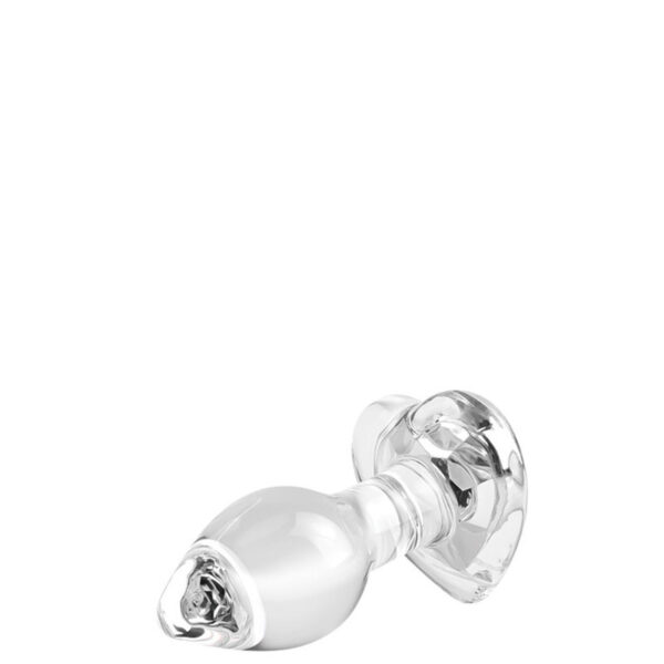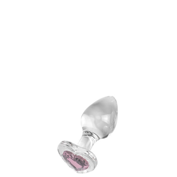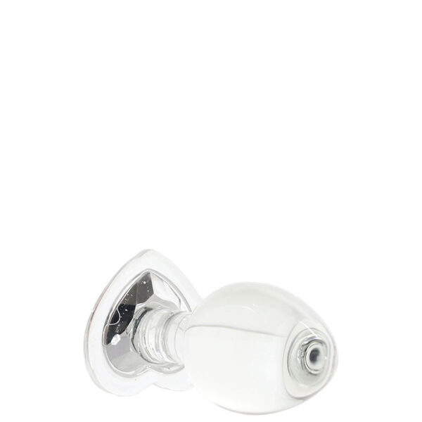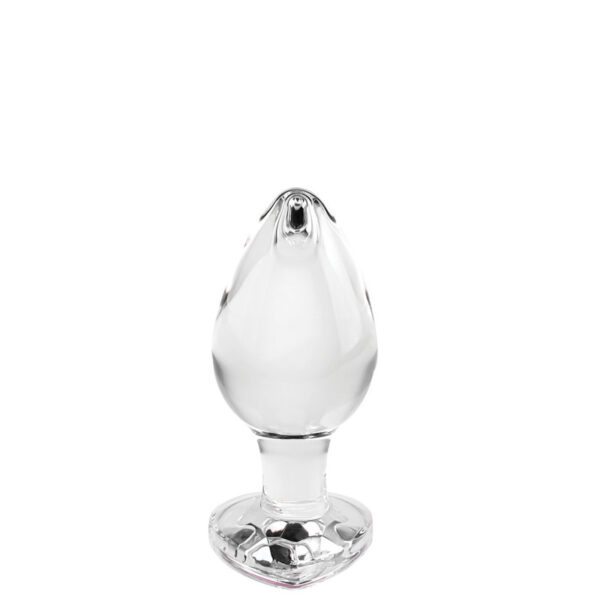 Plug anal grande em vidro com pedra brilhante na base formato coração.
