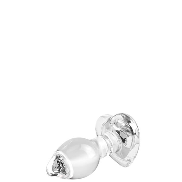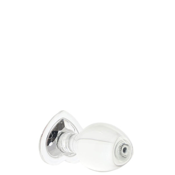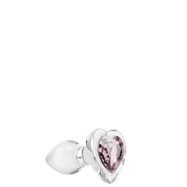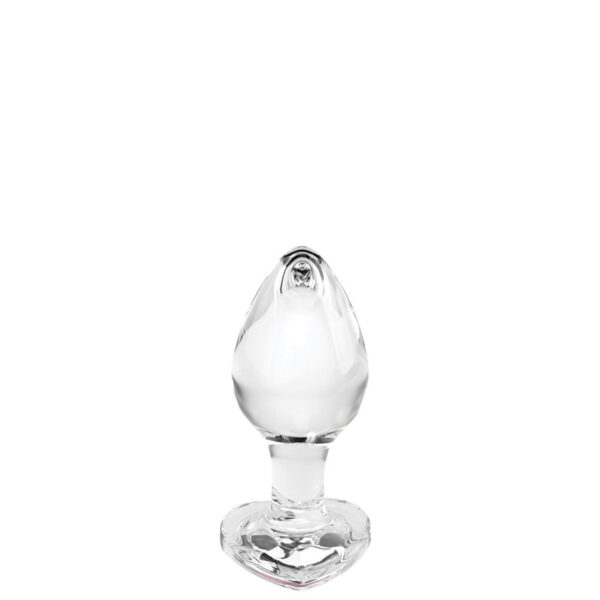 Plug anal médio em vidro com pedra brilhante na base formato coração.