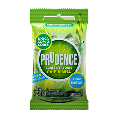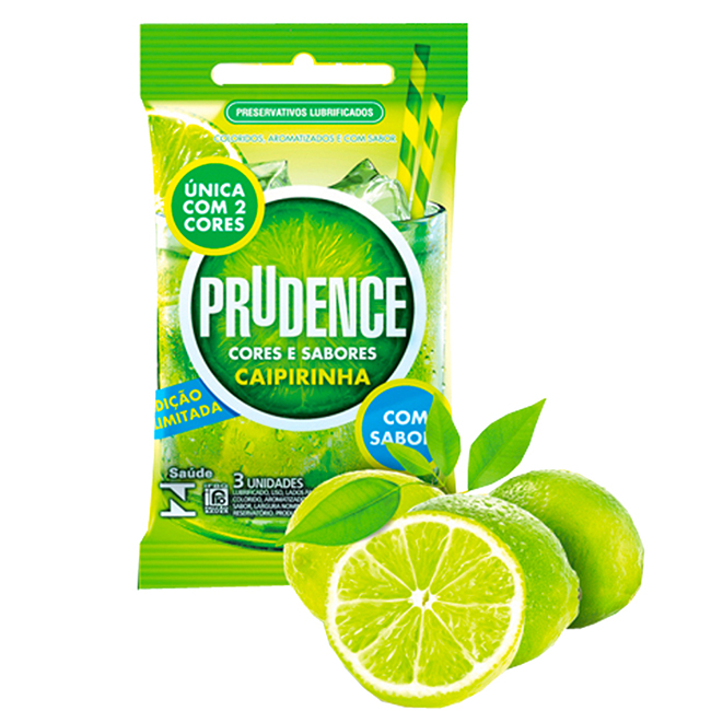 Composição – Látex de borracha natural vulcanizada, com lubrificante de silicone, aroma e sabor de caipirinha (contém sucralose). Obs: Não contém álcool.