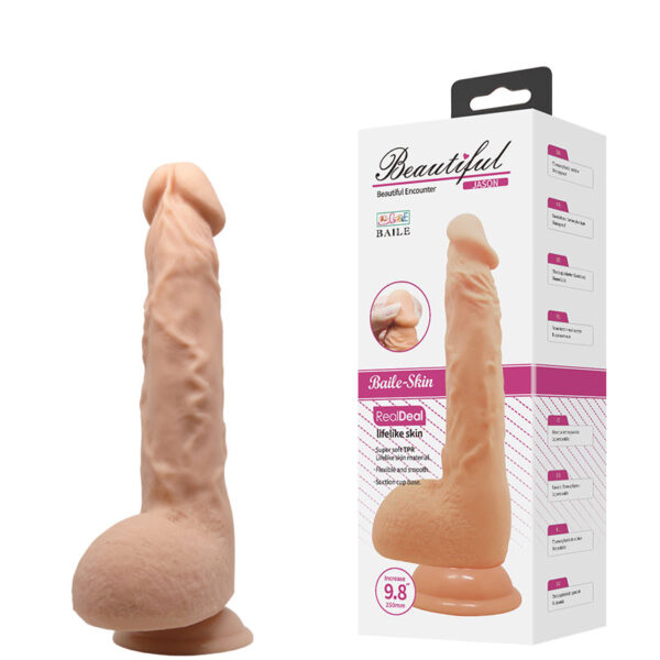 Início » Loja » Prótese Realística 24cm com Veias Estimuladoras, Glande Pequena, Escrota e Ventosa Bege – BEAUTIFUL JASON