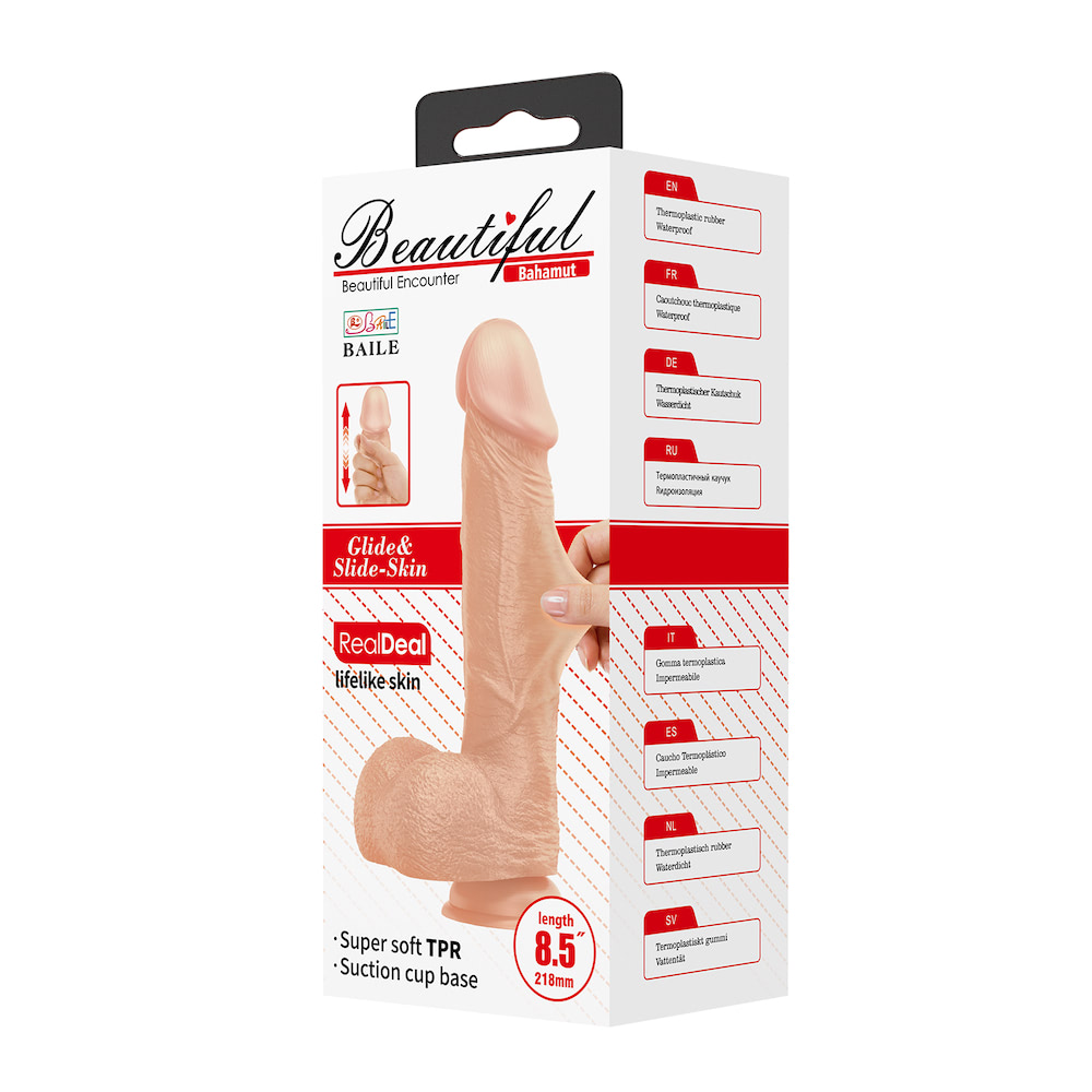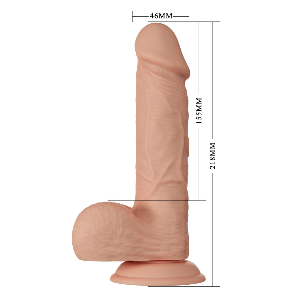 Prótese realística com glande em design confortável e anatômico, imita pele. Possui ventosa super resistente que adere em praticamente qualquer superficie lisa e plana garantindo assim maior segurança no uso do produto. Com textura aveludada e macia, contém veias em alto relevo no corpo da prótese, escroto texturizado, proporcionando assim rigidez e segurança em cada detalhe. Material a prova d’água.
