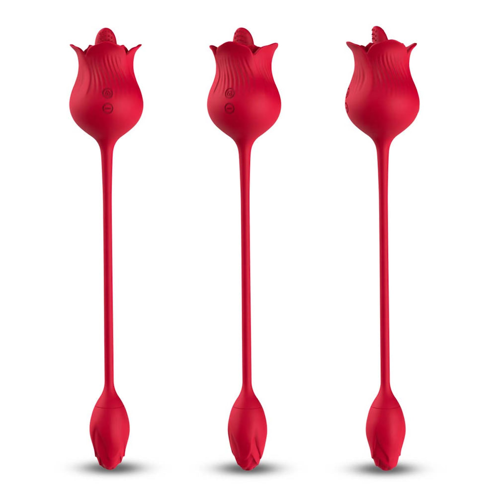 Vibrador Duplo Flexível em Formato de Rosa. Assim como o nome já diz tem um formato na flor rosa com cabo, ideal para o Ponto G e estimular novas áreas excitantes.Com 10 modos de vibração e 10 modos de estimulação da língua, (para frente e para trás).Produto Recarregável, acompanha cabo USB.